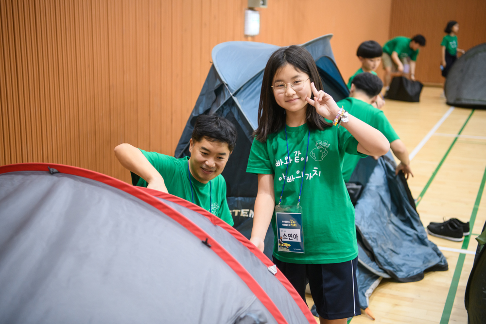 - 학교에 텐트를 치고 아빠와 함께 캠핑하기